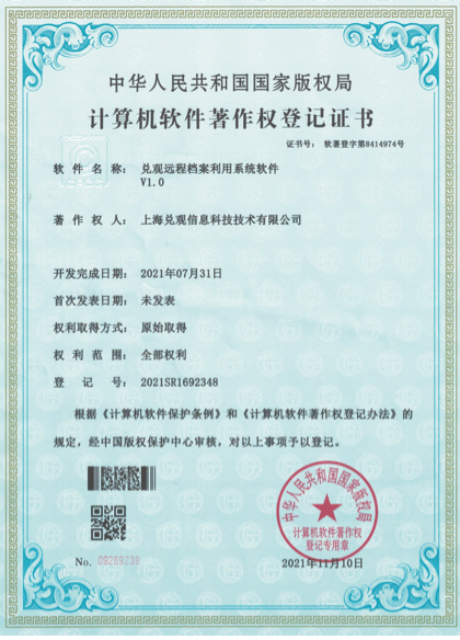 上海兑观信息科技技术有限公司是国内领先的智慧档案管理一站式解决方案供应商。我们将人工智能技术全面应用于档案收、存、管、用全业务流程,并在综合利用机器视觉、自然语言理解等人工智能技术基础上,为客户提供智慧档案管理方案咨询、方案实施以及档案管理代运营的一站式服务;同时采用档案管理功能的模块化和产品化设计,为客户提供灵活的产品定制服务,满足个性化需求。